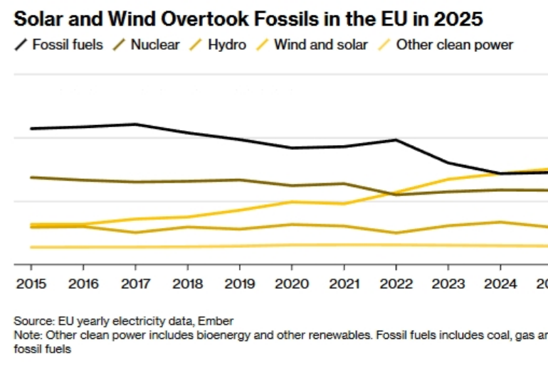 Wind and Solar Power Overtook Fossil Fuels in Europe Last Year